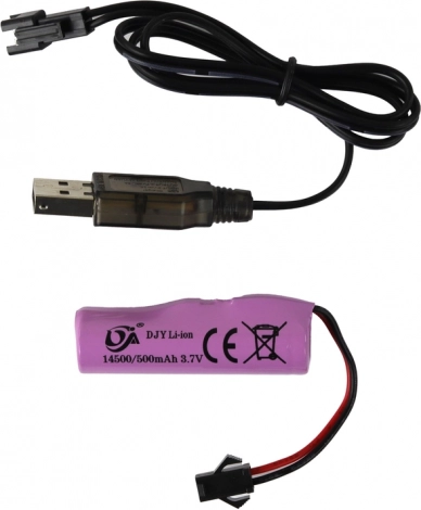 Der medfølger et 3,7 V/500 mAh Li-ion batteri og USB-kabel for nem opladning – mere kørsel, mindre ventetid.