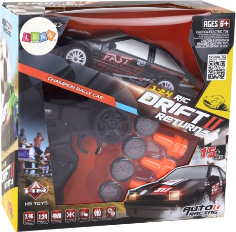 Denne stilfulde og hurtige RC-bil leverer en stærk kombination af underholdning og ydeevne. Takket være 2,4 GHz får du jævn og pålidelig styring uden interferens, både frem/tilbage og med præcis styring. De udskiftelige hjulsæt – mønstrede for greb og glatte til drift – lader dig tilpasse kørslen til din stil.