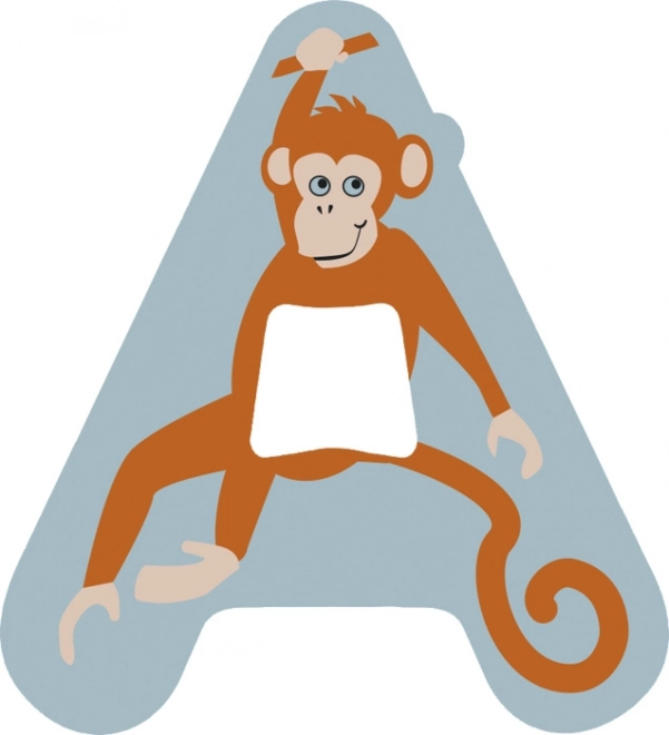 Træbogstav A med abetema er den ideelle dekoration til børneværelset. Fremstillet af FSC-certificeret træ, tilbyder det et smukt pastel design og afrundede kanter for en sikker og venlig berøring.