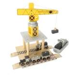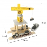 Børn vil elske denne træhavnekran, som giver mulighed for at lege, mens de læsser containere fra skibe til biler og tog. Dette sæt tilbyder mange komponenter, der muliggør forskellige lege scenarier, udvikler fantasi og manuelle færdigheder hos dit barn.