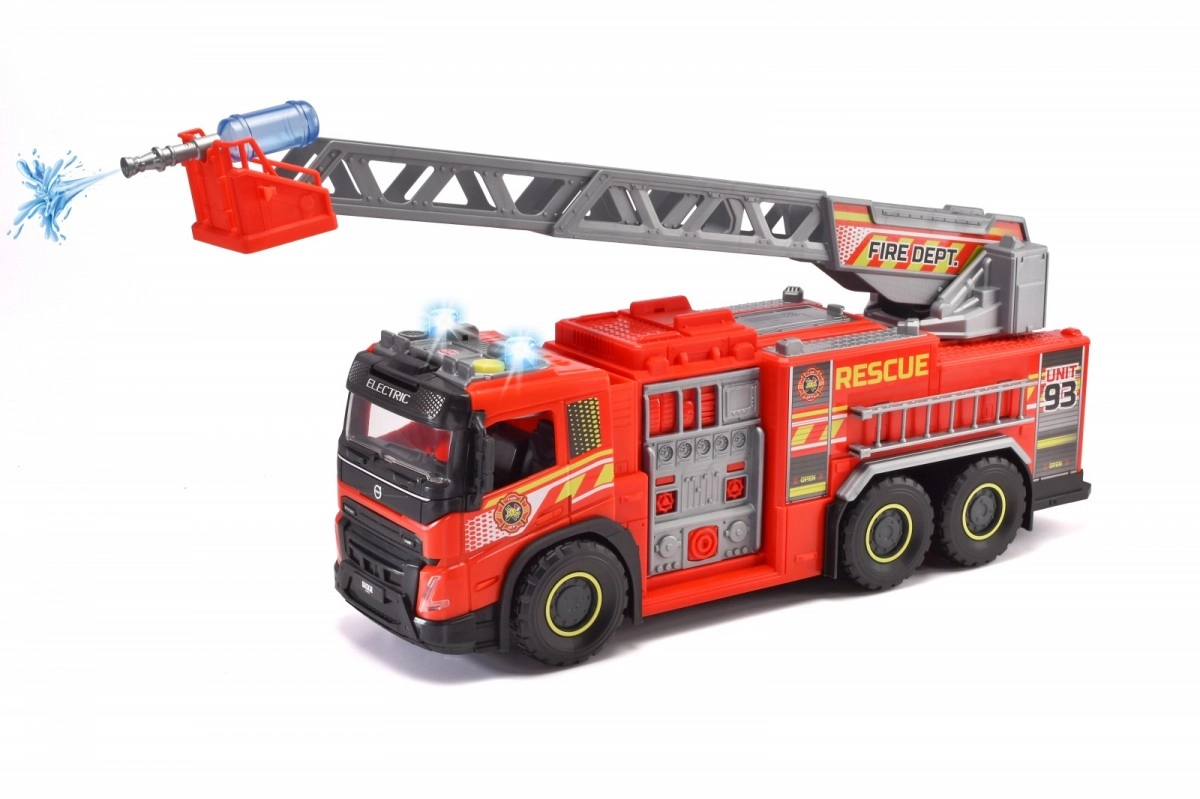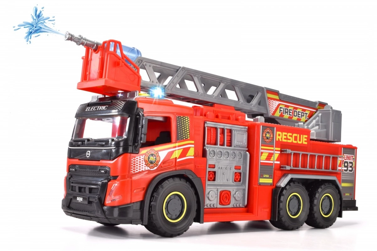 Den store brandbil fra Dickie Toys, officielt licenseret af Volvo, kombinerer moderne design med funktioner til realistiske redningsmissioner. Med lys- og lydeffekter vil dit barn føle sig som en ægte brandmand. Den drejelige og udtrækkelige stige gør det nemt at nå svært tilgængelige steder.