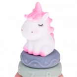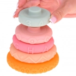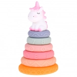 Gummi og sensorisk pyramide er et fantastisk legetøj til de mindste børn. Den består af en enhjørningefigur og seks sammenhængende ringe, der fremmer udviklingen af finmotorik og farvegenkendelse.