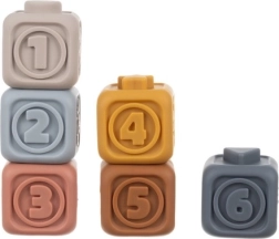 De bløde sensoriske terninger fra Kruzzel er fremstillet af kvalitets PVC, der er sikker for børn fra 6 måneder. Disse terninger tjener ikke kun som legetøj, men også som bidering, hvilket gør dem til et ideelt værktøj til udvikling af børns sanser. Deres blide jordfarver hjælper desuden med at berolige barnet.