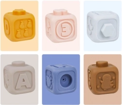 Hver terning er udstyret med bogstaver, tal og andre mønstre, så børn på en sjov måde bliver introduceret til omgivelserne og udvikler deres logiske tænkning og koordination.