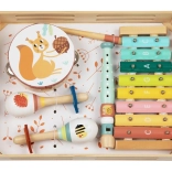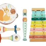 Sættet indeholder instrumenter som tamburin, maracas og klokkespil, som underholder børnene og opmuntrer til selvudtryk. Det glade design af skovens dyr tiltrækker børns opmærksomhed og hjælper dem med bedre at forstå musik.