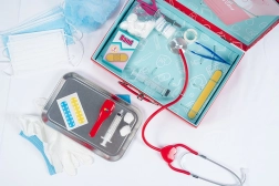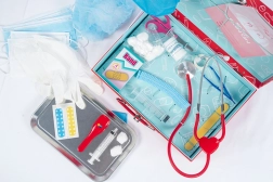 Lægetasken indeholder 27 dele sundhedsudstyr til realistisk rollespil.