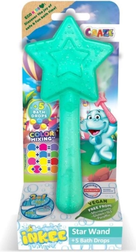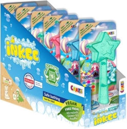 Gør badetiden til en uforglemmelig oplevelse med Magisk Stav Inkee. Hver stjernestav indeholder 5 badeperler, der giver smukke farver og boblende sjov. Børn kan lege, blande forskellige farver og skabe regnbueeffekter direkte i vandet.