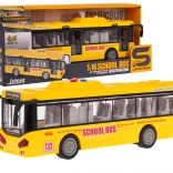 Modellen er udformet med fokus på detaljer, inklusive et realistisk udseende, døre der kan åbnes, og den markante tekst SCHOOL BUS på siderne.