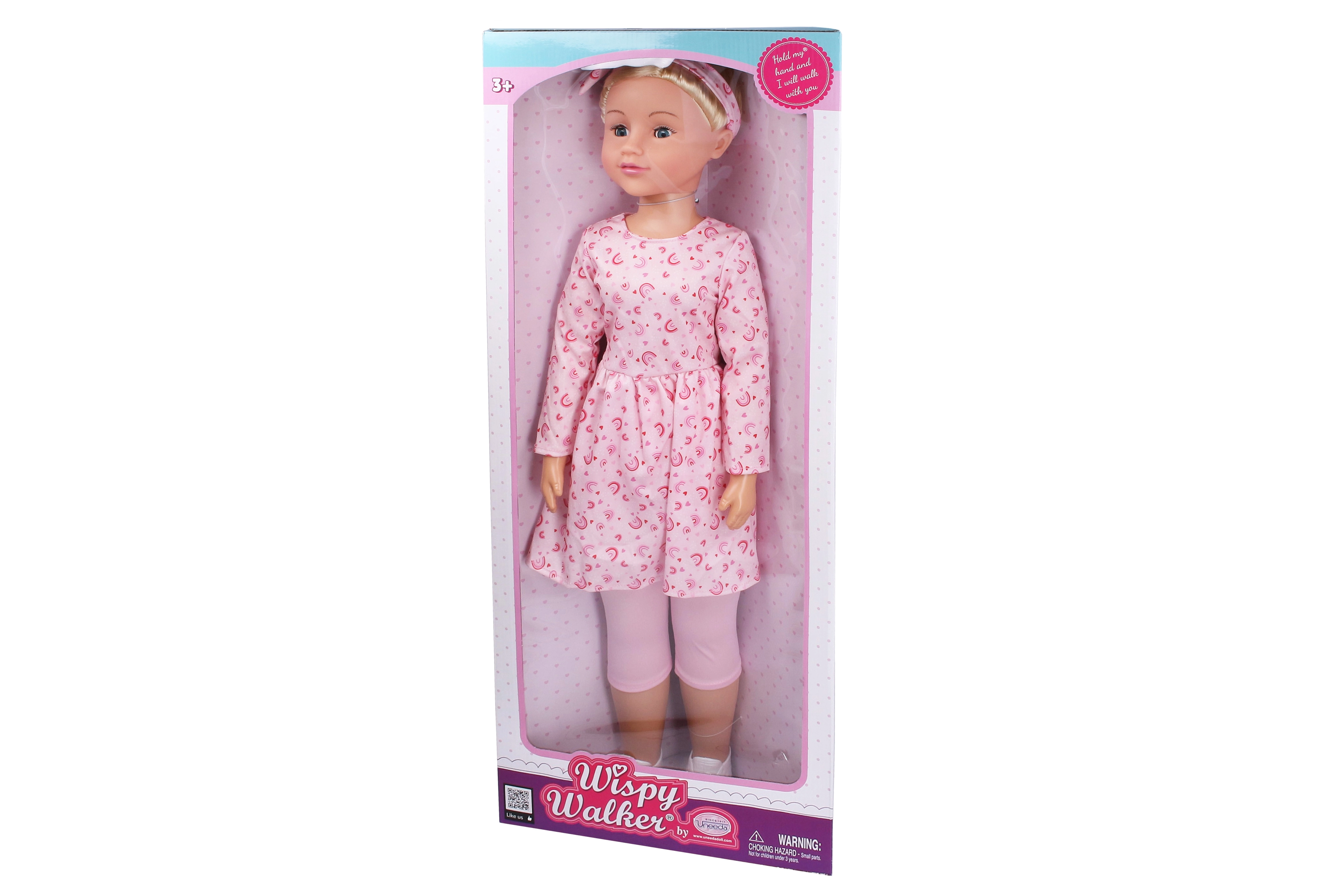 Denne store gående dukke er en ideel ledsager for små omsorgspersoner. Højden på 76 cm giver et realistisk indtryk, dukken har blinkende øjne og efterligner gang, når den holdes i hånden. Takket være den høje kvalitet er den velegnet til daglig leg og udvikling af sociale færdigheder.