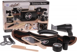 Rigt udstyret barbersæt til børn for små frisører fra 3 år tilbyder 10 dele inklusive værktøjsbælte, hårtørrer med lys og lyd, barbergrej og kam. Kvalitetsmaterialer sikrer lang holdbarhed og sikker leg med klipning, barbering og styling af skæg og frisurer.