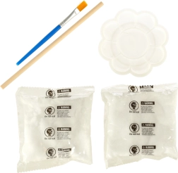 • Pakkens indhold: gipsform af hale, krystalsand x2, 500 ml målebæger, rørepind, pensel, farvepalet, 3 farver.