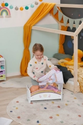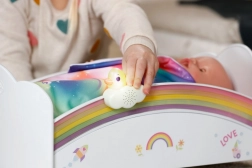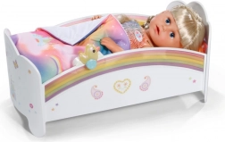 Den søde regnbueseng til BABY born-dukker forvandler puttetid til et magisk ritual. Den byder på natlys med vuggevise, vendbart sengetøj og design, der kan pyntes med klistermærker. Der er også en hemmelig rum under madrassen til små skatte.