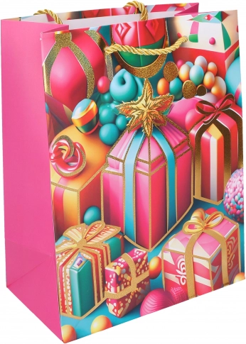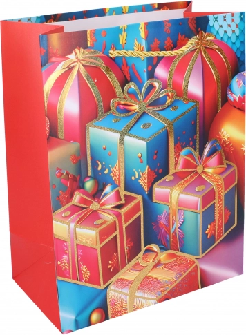 Denne julegavepose sparer dig tid på indpakningen og giver samtidig dine gaver et repræsentativt udseende. Størrelse L er velegnet til større gaver, tøj, bøger eller sæt med kosmetik. Kvalitetsmateriale og robuste hank gør transporten behagelig.