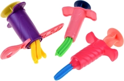 Stempeldyser og presser skaber forskellige mønstre og strimler af “dej”. Børn opnår let imponerende resultater og træner deres fingerfærdighed.