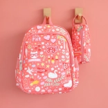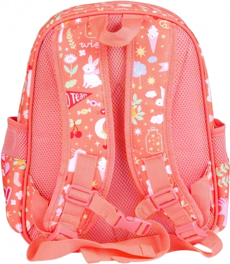 Den stilfulde koralrosa rygsæk med et muntert motiv vil glæde små rejsende. Takket være de polstrede skulderstropper, en brystrem mod at stropperne glider af, samt et åndbart, polstret bagpanel bæres den behageligt hele dagen. Den isolerede frontlomme holder mad og drikke friske længere, mens sidelommerne er ideelle til en drikkeflaske.