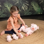 Sættet med plyslegetøjet Smågrise med Mor tilbyder et meget blødt og behageligt materiale, der er ideelt til kram og leg. Mor har en praktisk lynlås på maven, hvor smågrise er skjult, hvilket er fantastisk til at udvikle følelser og plejende færdigheder hos børn. Denne funktion er desuden praktisk til rejser, da smågrisene kan være sikkert gemt.