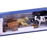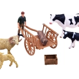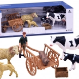 Sæt med bondegårdsfigurer – ko, kalv, vædder, får og landmand med dyreindhegning – C