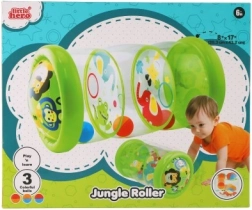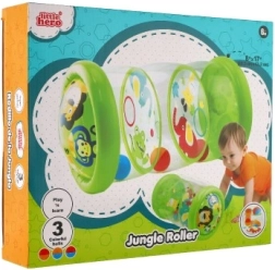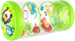 Cylinderen er udsmykket med farverige dyreillustrationer og indeholder tre bolde, der rasler let ved bevægelse, hvilket underholder og stimulerer børnene.