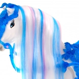 • Hesten kan bevæge sig fremad og laver realistiske vrinsk-lyde. Dens udseende fuldendes af en lang mane og hale, sammen med en blå sele.
