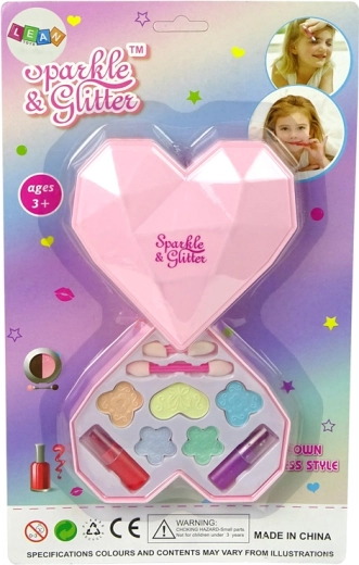 Hele sættet er opbevaret i en mini palette formet som et hjerte. Kosmetiktasken passer nemt i tasken. Derfor vil det være ideelt til små udflugter med venner, men også som en nødvendighed ved møder.