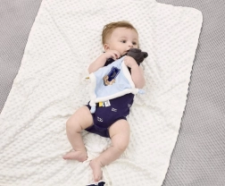 Det ultra-bløde materiale, behageligt mod babyhud, beroliger og giver en følelse af tryghed fra dag ét.