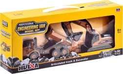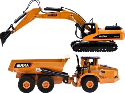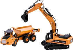 Robust metalsæt af byggemaskiner med realistisk gravemaskine og tipvogn til børn fra 8 år. Takket være den overvejende metal-konstruktion er sættet holdbart og slidstærkt med detaljeret udførelse til autentisk leg og udstilling. Gravemaskinen har 360° roterende kabine og bevægelig arm med skovl, mens tipvognen har store gummihjul skånsomme mod gulve og lad til transport af småting.