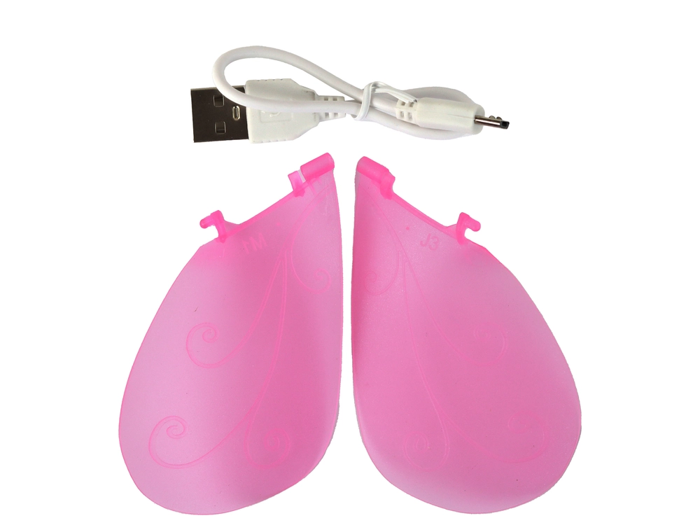Feen med blinkende farvede lys og roterende vinger skaber en unik stemning af eventyrlig magi. Hendes lyserøde outfit og vinger giver ekstra charme, så hun ligner en figur direkte fra eventyrriget.