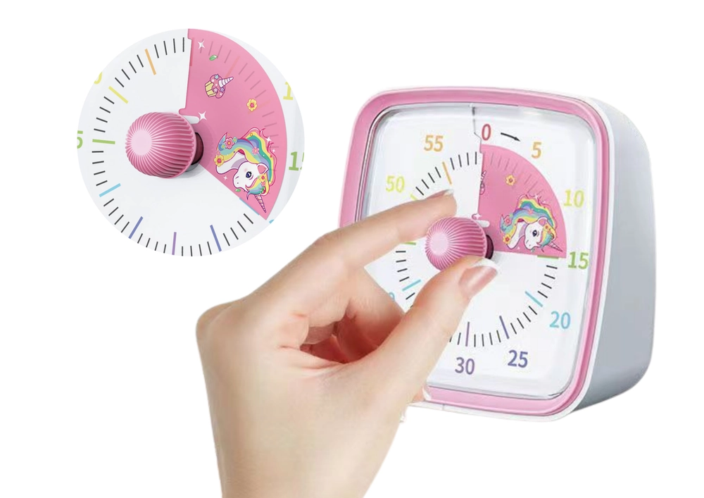 Minutur til børn med alarmfunktion er en ideel hjælper til at lære tiden. Det attraktive design med enhjørningemotiv fanger ethvert barns opmærksomhed og gør læringen sjov.