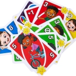 Oplev UNO Junior Move – en sprudlende børnevariant af det legendariske kortspil. Målet er klart: kom af med alle kortene. Men pas på, særlige kort med instruktioner tilføjer bevægelse og sjov: hop på stedet, lav et par squats eller klap tre gange. Hver runde er derfor aktiv, sjov og uforudsigelig.