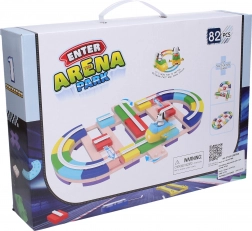Underholdende autobane til børn med en 118 cm lang bane, 82 byggeklodser og bevægelige elementer, som giver små chauffører timevis af kreativ leg. Sættet indeholder en vogn med 2 hastighedstilstande, en hundefigur og sugekopper for bedre stabilitet. Med manuel ombygning af dele kan man ændre retning og banens udformning under kørslen.