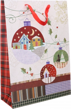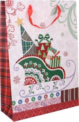 Gavepose af papir med julemotiv er det ideelle valg til hurtig og æstetisk indpakning af gaver. Takket være de større mål rummer den komfortabelt mere voluminøse genstande, og den robuste udførelse sikrer sikker transport.
