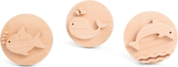 Disse træstempler giver dig mulighed for at stemple en delfin, en fisk og en hval i sandet. Ideel underholdning til børn i sandkassen eller på stranden. Legetøjet understøtter motorik, kreativitet og leg udendørs.