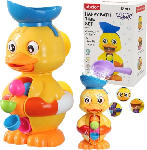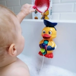 Badelegetøjet And fra Woopie er ideelt til underholdning i badet. Når barnet hælder vand, begynder andens øjne at dreje, næbbet åbner sig og hælder vand ned i vandhjulet placeret på maven. Takket være to sugekopper kan legetøjet let fastgøres til væggen på badeværelset eller til badekarret.