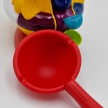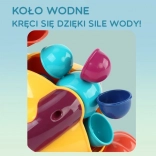 Legetøjet engagerer barnet interaktivt ved, at øjnene bevæger sig, når der hældes vand, og vandet løber gennem hjulet på maven.