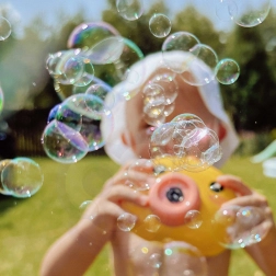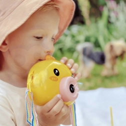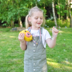 Boblemaskine kylling WOOPIE er det ideelle legetøj til børn fra 3 år. Nem betjening med On/Off-knap, rig bobleproduktion og let konstruktion gør den til den perfekte ledsager i haven, på legepladsen og til børnefødselsdage.