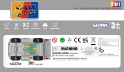 Børnesæt fra WOOPIE med stor bugseringslastbil og fire byggekøretøjer giver timer med kreativ leg. Den store transporttrækker fungerer også som opbevaring til de mindre køretøjer. De små maskiner har friktionsmotor for at kunne køre selv, og hele sættet byder på lys- og lydeffekter (3× AA, medfølger ikke). Velegnet til børn fra 3 år til leg inde og ude.