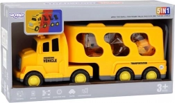 Udforsk den spændende verden af vejhjælp og byggeri med WOOPIE-sættet. Den store gule transportlastbil fragter og opbevarer alle de små biler – gravko, betonblander, kran og bulldozer. Takket være friktionsdrevet kører de mindre maskiner efter et enkelt skub, og lys samt lyde giver en realistisk legeoplevelse.