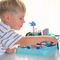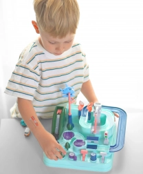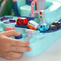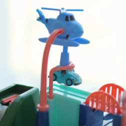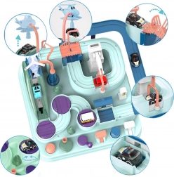 Takket være den gennemtænkte konstruktion og de forskellige elementer tilbyder legetøjet uforglemmelige stunder fulde af spænding og udfordringer. Et ideelt redskab til udvikling af fantasien og fine motoriske færdigheder, samtidig med at det giver masser af sjov. Racerbanen tilbyder ikke kun kørselsmuligheder, men også interaktive elementer styret med knapper og nøgler. Dette spændende spil kræver koncentration og færdigheder.