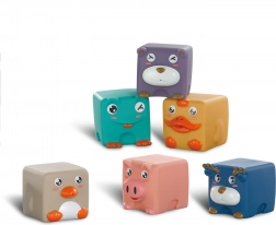WOOPIE sensoriske klodser er designet til at understøtte barnets udvikling fra 12 måneder. Hver klods har forskellige fremstående former med dyremotiver og er lavet af højkvalitetsmateriale, der er blødt og behageligt at røre ved, og skaber lyde ved tryk.
