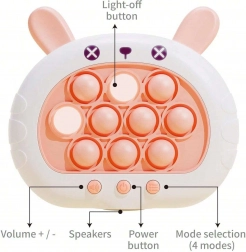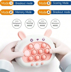 Det sjove og interaktive spil POP IT Kanin bringer glæde til både børn og voksne. Det udvikler hjernen, finmotorikken, øje-hånd-koordinationen og hjælper med at bekæmpe stress. Legetøjet tilbyder fire forskellige spiltilstande, som holder alle på tæerne.