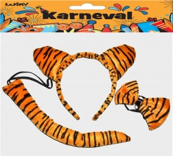 Forvandl dig på et øjeblik til en nuttet tiger! Dette karnevalssæt til børn indeholder alt, hvad du behøver til en hurtig og behagelig forvandling – tigerører på hårbøjle, sløjfe om halsen og en smart hale. Ideelt til karneval, skolearrangementer og temafester.
