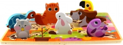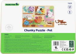 Træpuslespil fra mærket Tooky Toy er ideel til børn fra 12 måneder. Det indeholder en plade og 7 tematiske elementer, som børn skal placere på det rigtige sted. Pladen er lavet af sikre, livligt farvede lakker, der bringer meget glæde ved leg.