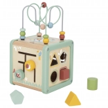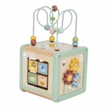 Den træbaserede aktivitetskube WOOPIE GREEN i blide pastelfarver kombinerer leg og læring i ét. Den tilbyder perlelabyrint, form-sorter, roterende klodser med dyr, tandhjul og skydemekanismer, som styrker finmotorik, logik og koordination. Det sikre design med glatte kanter og kvalitets træ er et ideelt valg til børn fra 18 måneder og som en fantastisk gave.