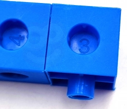 Materialer til undervisning, klodser, tal, spilleterning, snor