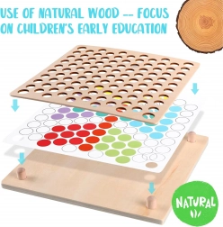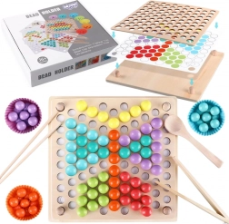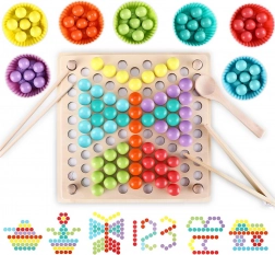 Woopie farverige bolde tilbyder timers sjov for børn. Sættet indeholder en træplade og skabeloner, hvor børn kan skabe deres egne mønstre eller puslespil. Farverige former hjælper med at sortere kuglerne og understøtter koncentration samt visuel og motorisk koordination.