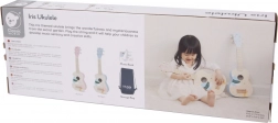 Ukulelen er lavet af holdbare materialer og dekoreret med ikke‑giftige farver. Den egner sig perfekt til fri leg, musikundervisning og hyggelige stunder med familien – både hjemme og ude. Det er en sjov måde at vække kreativitet og musikforståelse hos børn.