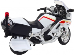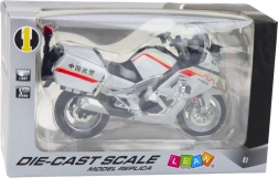 Oplev en detaljeret model af en motorcykel i hvidt med rød‑gule linjer, der trofast indfanger dynamikken i moderne éthjulede maskiner. Den metalliske krop i kombination med kvalitetsplast sikrer lang levetid, mens realistiske elementer som spejle og forlygter giver modellen et autentisk udseende.