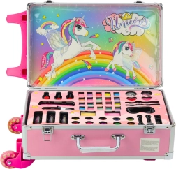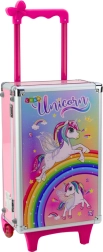 Børne kosmetiksæt i kuffert på hjul enhjørning rosa