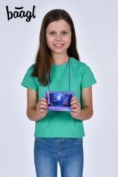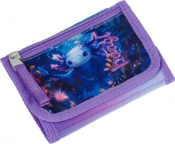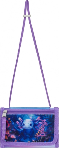 En stilfuld hals-pung fra Baagl med et sødt axolotl-motiv, ideel til både børn og teenagere. Den tilbyder sikker bæring om halsen, navneskilt, lukning med velcro og separat lomme til mønter. Fremstillet af holdbart genanvendt materiale til daglig brug.
