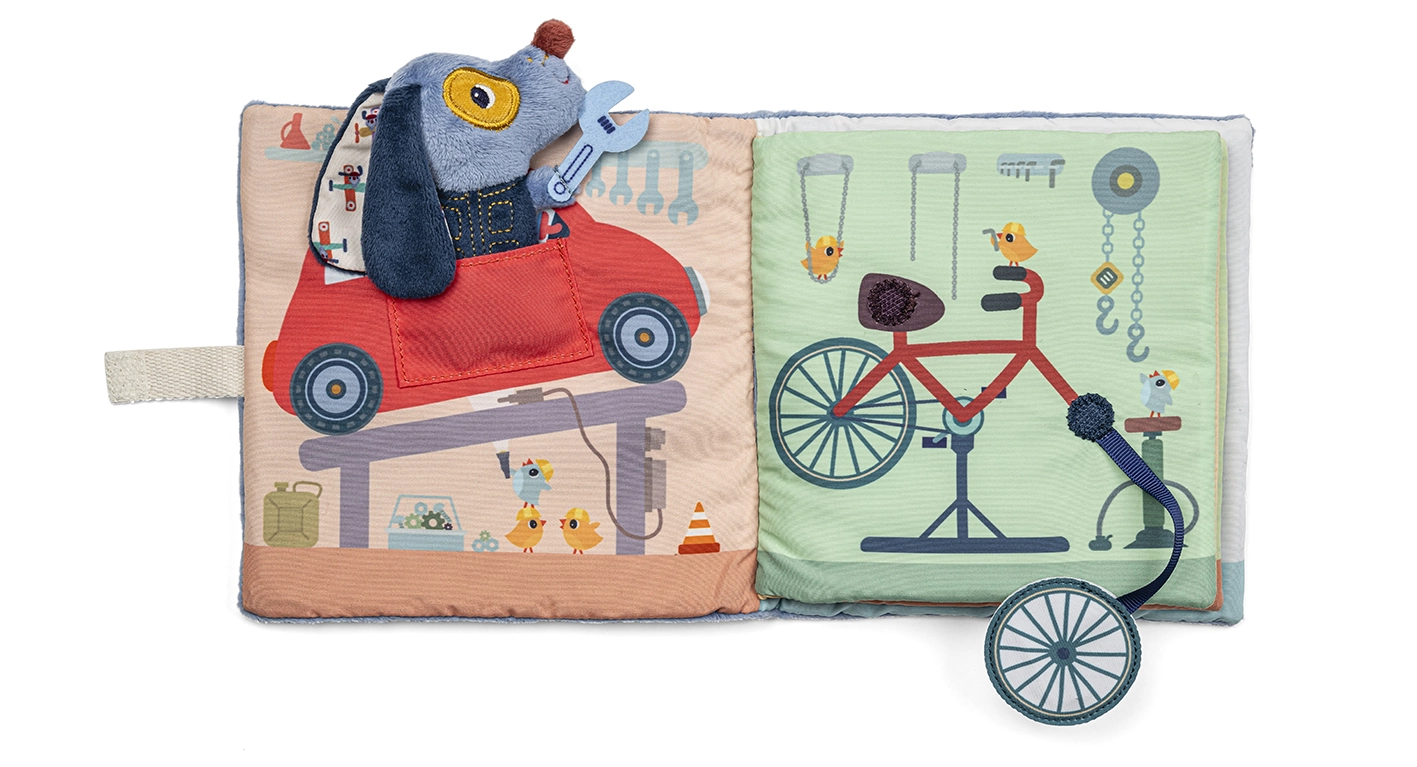 Oplev hundehvalpen Jules’ verden i hans garage gennem denne interaktive tekstilbog. Hver side giver barnet nye impulser til at udvikle sine færdigheder:
